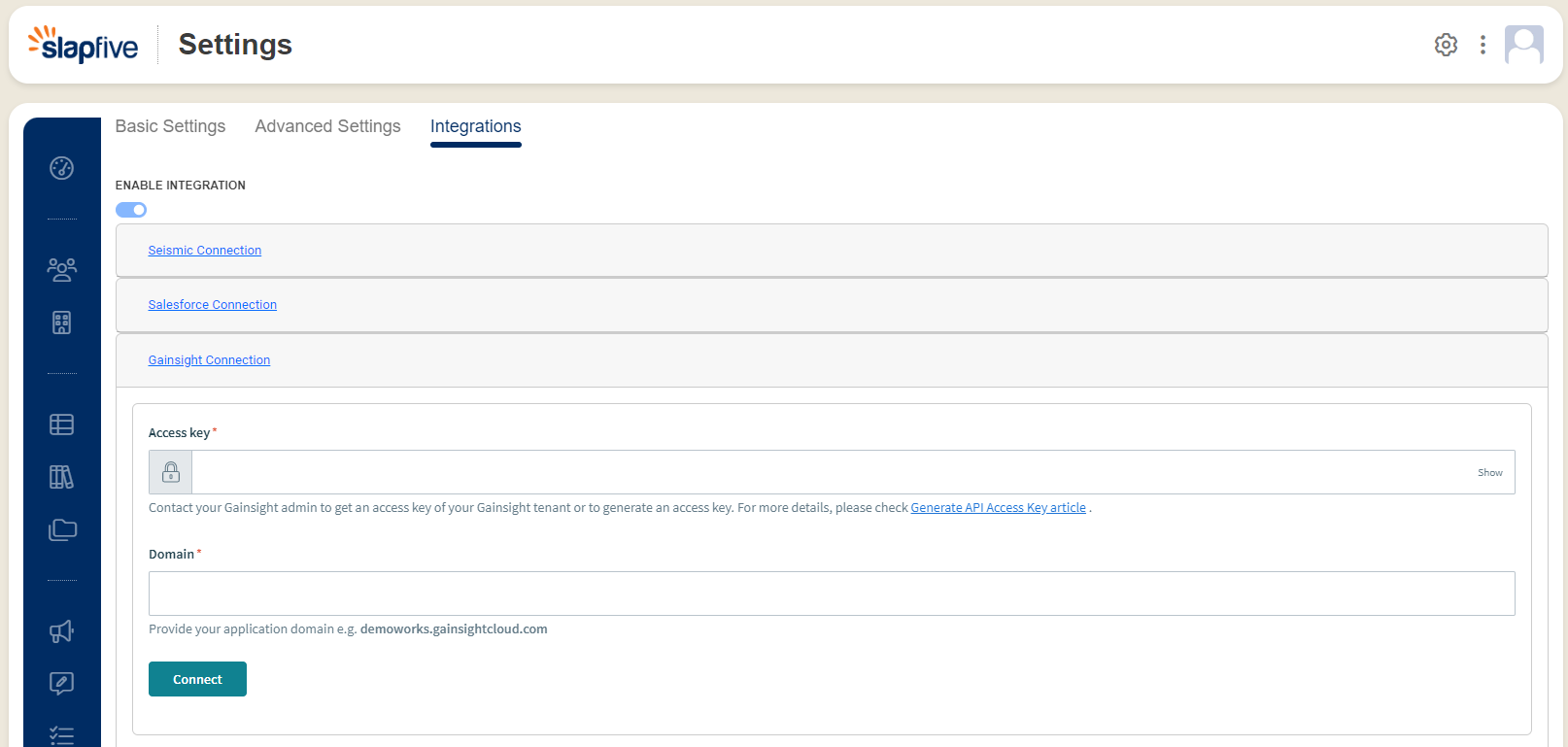 This section covers how to establish your Gainsight CS Connection within SlapFive's Embedded Integration.